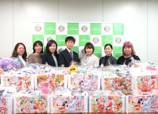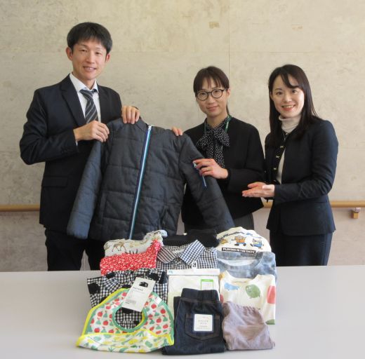設で、組合員からお預かりしたこども服をご寄付い